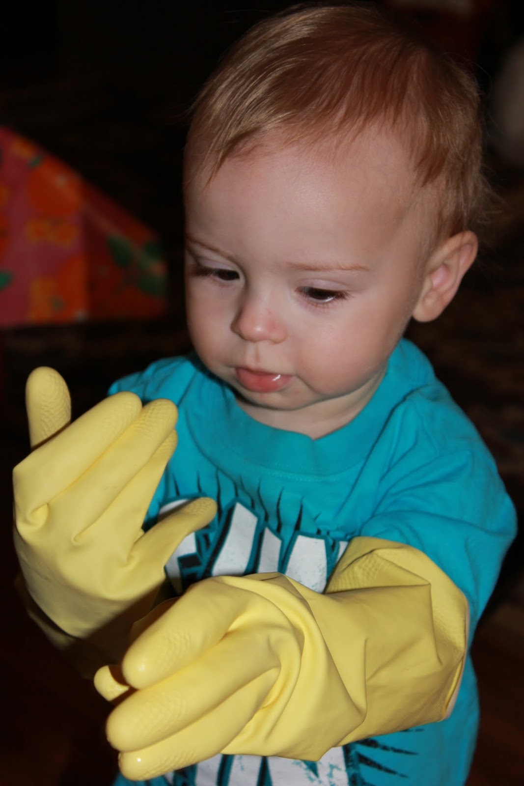 He got them on and then didn't like it as much as he thought he would, then he had a little cry. When he forces or fakes crying he dramatically puts his hand in front of his face...he is just so sad. Am I a mean mom because I think his crying face is adorable? I think not.